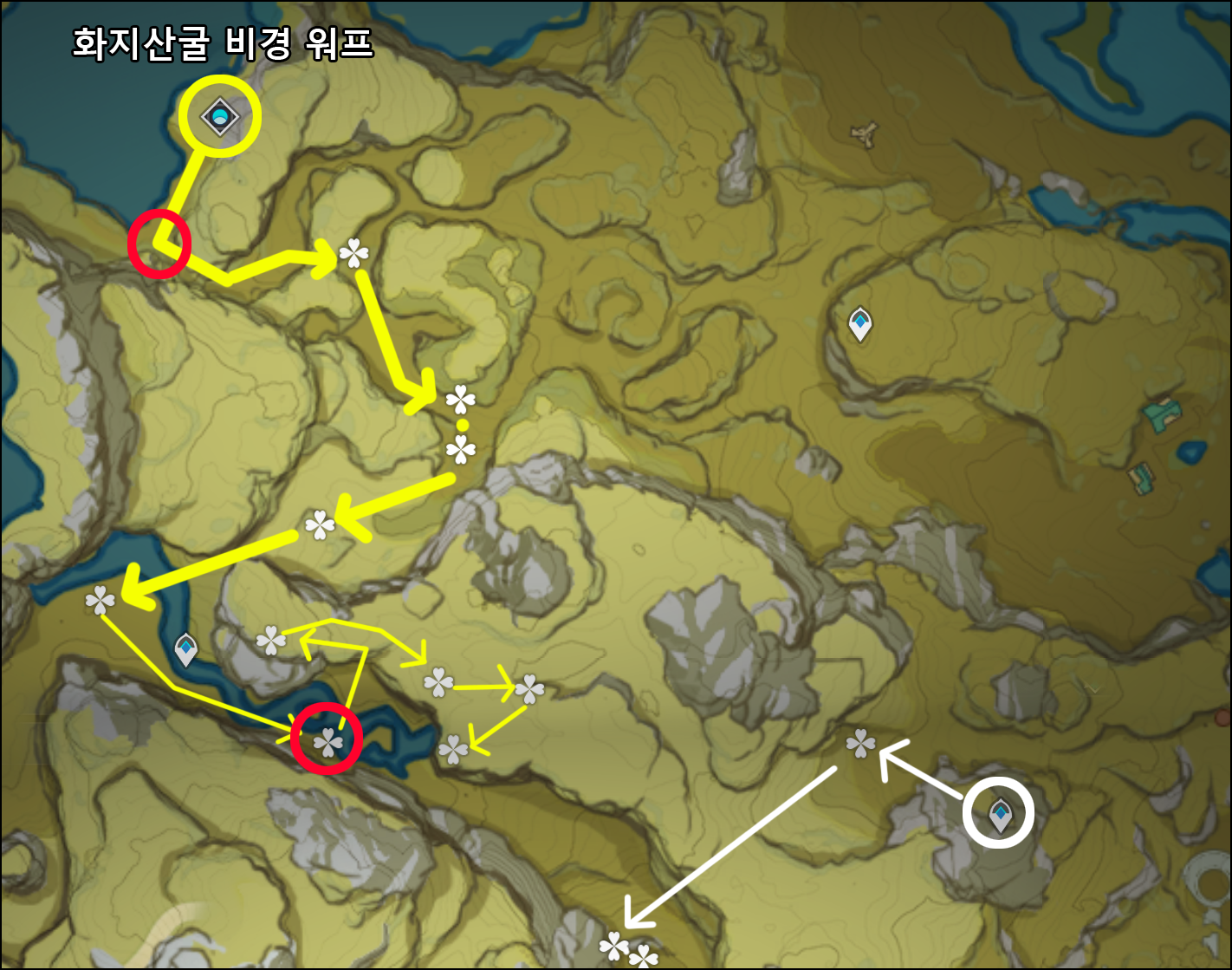 이후 흰색 동그라미로 표시한 워프를 타고 아래쪽 절운간쪽도 돌아주자.